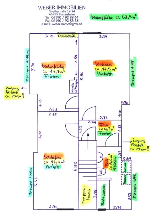 Die Wohnung befindet sich im Dachgeschoss eines sehr gepflegten 3 Familienhauses in zentraler Ortslage von Oberursel-Stierstadt und wird Sie auf Anhieb begeistern. Dadurch, dass der Kniestock (Drempel) 1,45 m bzw. 1,80 m hoch ist, vermitteln die Schrägen ein tolles Raumgefühl ohne störend zu sein. Die Wohnung ist sehr lichtdurchflutet und wurde komplett saniert (Klickparkett in Wohn- und Schlafzimmer, Fliesenböden in Flur und Küche, weiße Wand- und Deckenflächen, weiße Innentüren, NEUES TGL-Wannenbad). Bereits beim Betreten der Wohnung wird Sie der Flur mit Oberlicht begeistern. Die großzügige Küche kann hervorragend als Wohnküche genutzt werden. Die beiden Zimmer sind ähnlich groß geschnitten und bieten trotz des etwas länglichen Schnitts gute Einrichtungsmöglichkeiten. Das tolle Badezimmer ist mit einer Badewanne ausgestattet, die räumlich etwas abgetrennt ist (siehe Bilder) - hier finden auch problemlos Waschmaschine und Trockner ihren Platz. Die Dachschrägen (begehbar von Küche und Flur, gute Kopfhöhe) können als Abstellräume genutzt werden. Ein kleines Kellerabteil steht ebenfalls zur Verfügung.