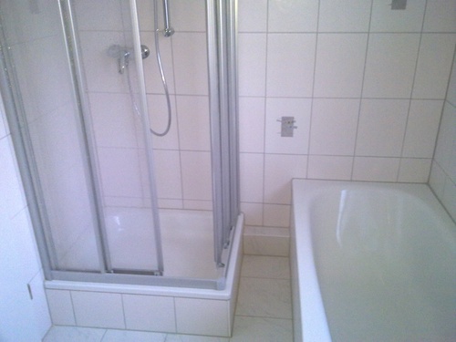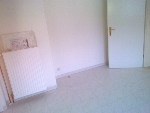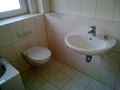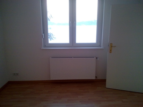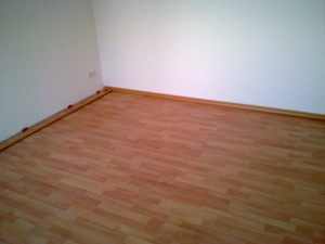 Bodenfliesen und Fliesenspiegel in der Küche. Boden und Wandfliesen im Bad sind weiß. Flurboden hell gefliest. Alle Wände mit neuer, weißer Strukturtapete. In den übrigen Räumen ist Laminat(Eiche hell) verlegt. Auf dem Balkon sind dunkle Steinplatten verlegt.