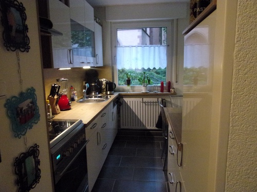 Küche: Spülmaschine, Wasserkocher, Kaffeemaschine, Geschirr, Töpfe, Gläser