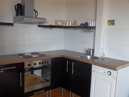 Die moderne Einbauküche kann bei Bedarf abgelöst werden.