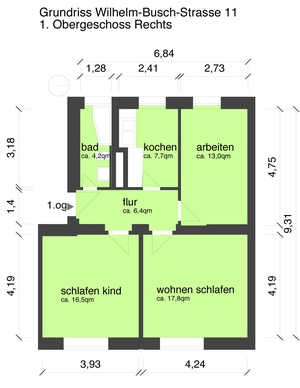 Miete 445 € (Kaltmiete) (96 € Nebenkosten)