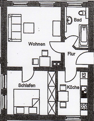 Helle sonnige 2-R -Whg.im DG.ca.51,m²; gefl. Bad ( mit Fenster , und Wanne; Küche, gefliest,mit Fliesenspiegel und Fenster; alle Wohnräume mit Laminat verlegt, Wohnzimmer mit super Ausblick, Flur; WM-Anschluß im Bad,Keller; TV und ,Telefonanschluß;gute Lage ,PKW- Stellplätze sind vor dem Haus ,Kostenlos Mietzeitraum: langfristig/unbefristet Kaution:930,00 EUR Warmmiete: 430,00 EUR Kaltmiete: 310,00 EUR Nk: 120,40 EUR Vermittlungsgebühr: keine