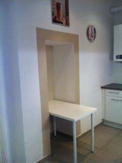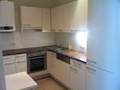 In der Wohnung befindet sich eine helle Einbauküche (Fronten weiß, Arbeitsplatte nussbraun) bestehend aus Ober- und Unterschränken, Ceran- Kochfeld, Backrohr, Umluft-Dunstabzug, Eiskasten mit Deepfreezer (drei Laden), Abwasch samt Armatur und Geschirrspüler.