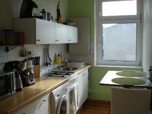 Angeboten wird eine wunderschöne 2-Zimmer-Altbau-Wohnung zur Miete ab 01.10.2011. In der Küche befinden sich Schränke, ein Herd, wie aber auch eine Spüle. Die Räume sind großzügig geschnitten, mittels der hohen Decken wirken die Räume noch größer.
